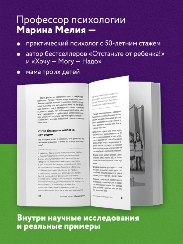 Марина Мелия — мама троих детей, профессор психологии, коуч-консультант первых лиц российского бизнеса. Автор бестселлеров «Отстаньте от ребенка!», «Бизнес — это психология», «Как усилить свою силу? Коучинг», «Успех — дело личное», «Просто о сложном. Как мы живем, работаем, любим», «Наши бедные богатые дети».