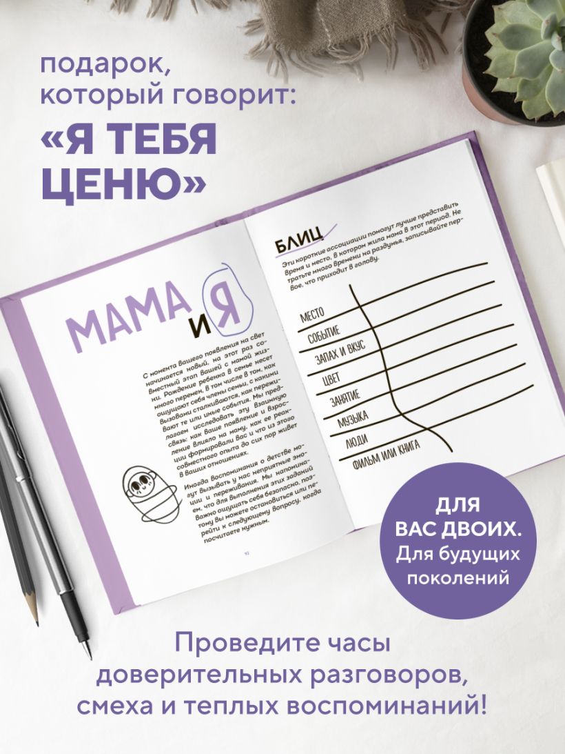 Это больше, чем просто книга. Это ваша семейная реликвия. Подарите себе и маме часы доверительных разговоров, смеха и теплых воспоминаний. Пусть ваша история будет наполнена любовью!