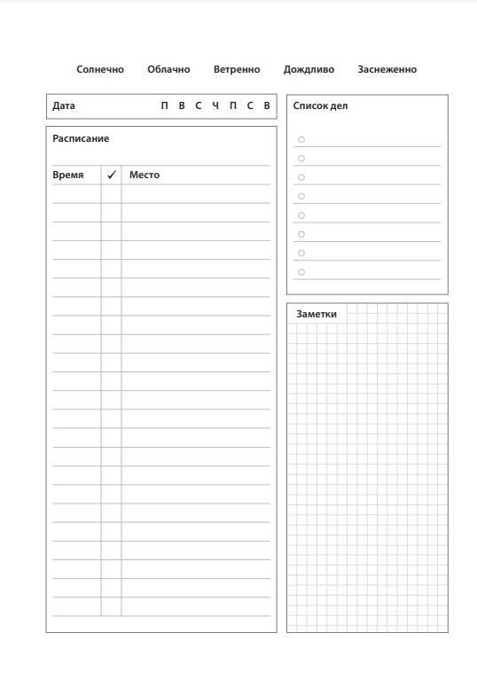 Сетка блока создана с учетом современных тенденций европейского дизайна: часть распределена по времени — для ваших рабочих дедлайнов, а другая часть — линейки, которые можно использовать как для личных заметок, так и для планирования рабочих задач.