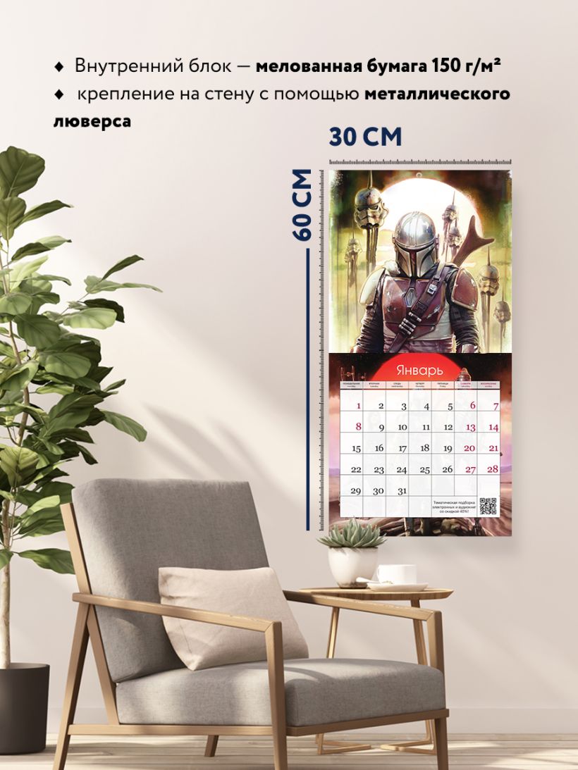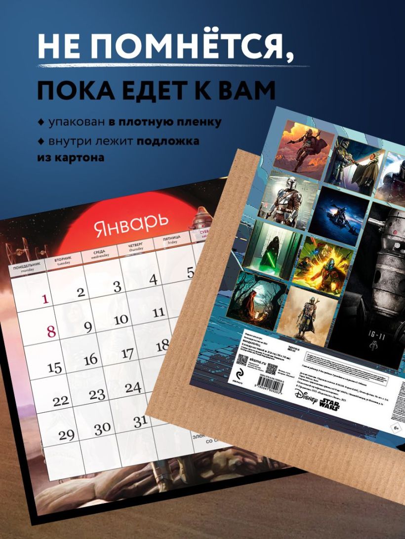 СУПЕРЛИЦЕНЗИЯ! Официальная продукция по сериалу «Мандалорец»! Великолепный лицензионный настенный календарь на 2024 год с самыми крутыми кадрами из сериала! Отличное полиграфическое исполнение, большой формат (300х300 мм) и удобная сетка, в которой отмечены все государственные праздники, — все это будет дарить вам такие незабываемые эмоции каждый день, что вы не заметите, как пролетит целый год! Таков путь.
