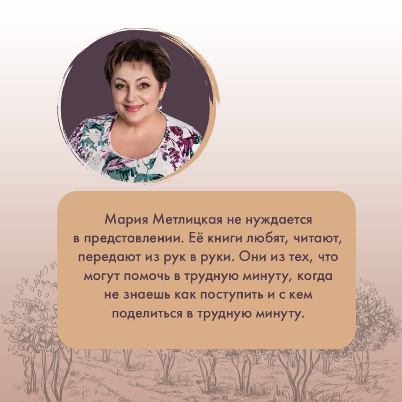 Книги Марии Метлицкой обладают несомненным терапевтическим свойством. Они убеждают в том, что жизнь не бывает безжалостна к тем, кто ценит жизнь и готов стать счастливым.