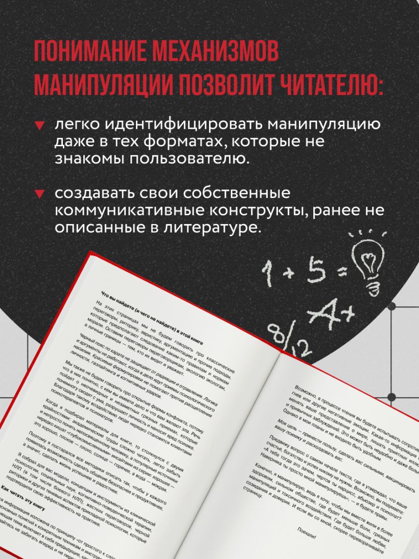 Вся наша жизнь - манипуляции друг другом. Мы регулярно сталкиваемся с деструктивным влиянием окружающих. Нас газлайтят в постели, вербуют на собеседовании и заставляют поверить любым новостям. Как понять, что вами управляют и очистить коммуникацию от токсичных приемов? Прежде всего - изучить механизм изнутри.