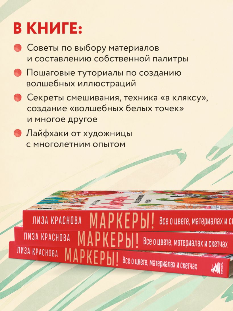 Художница и блогер Лиза Краснова предлагает окунуться в яркий мир маркеров и отправиться в творческое путешествие, чтобы полакомиться мороженым в Париже, увидеть хэллоуинскую тыкву в осеннем Лондоне и побывать на рождественской ярмарке в Берлине. Для этого достаточно просто взять в руки простой, но в то же время почти волшебный инструмент — маркеры.