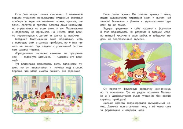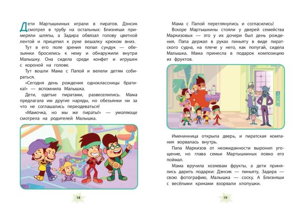 В этом сборнике — пять историй про весёлую семейку Мартышкиных на праздничную тематику! Простой и увлекательный стиль письма, яркая обложка и цветные кадры из сериала на каждом развороте точно понравятся детям 6—8 лет, причём как фанатам мультфильмов, так и еще не знакомым с семейкой читателям. А компактный формат позволяет взять книгу с собой в поездку или на прогулку, чтобы ребёнок точно не заскучал!