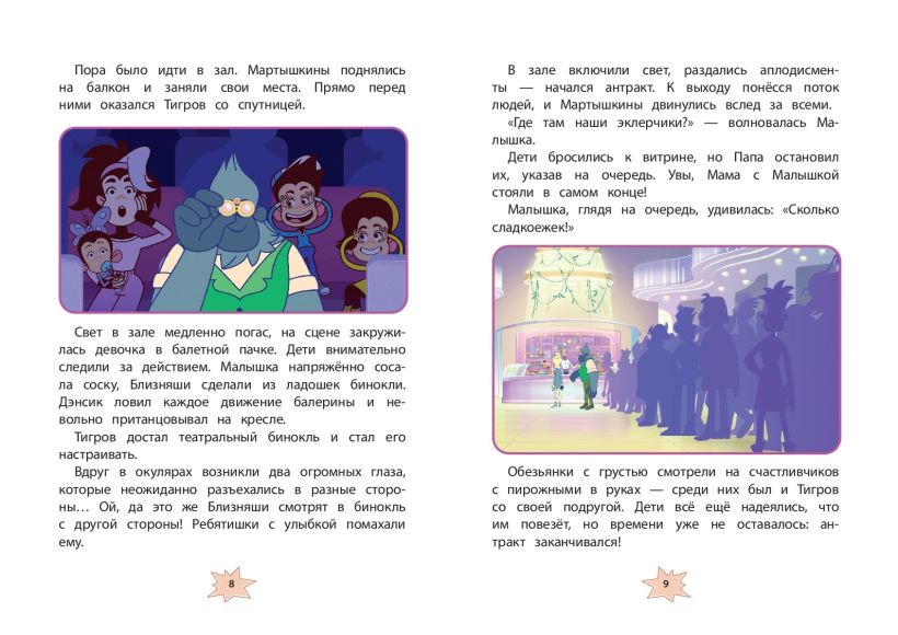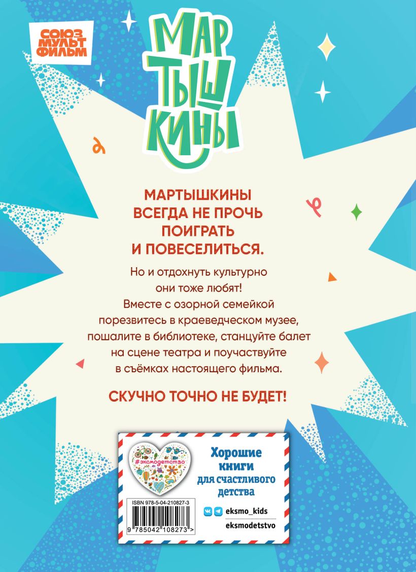 В этом сборнике — пять историй про приключения весёлой семейки Мартышкиных на культурно-развлекательную тематику! Простой и увлекательный стиль письма, яркая обложка и цветные кадры из сериала на каждом развороте точно понравятся детям 6—8 лет, причём как фанатам мультфильмов, так и еще не знакомым с семейкой читателям. А компактный формат позволяет взять книгу с собой в поездку или на прогулку, чтобы ребёнок точно не заскучал!