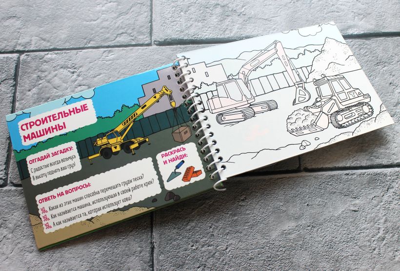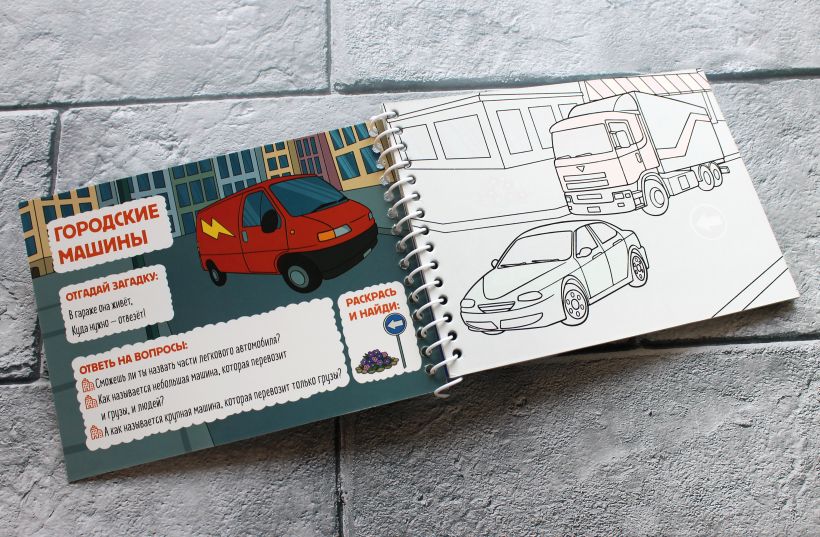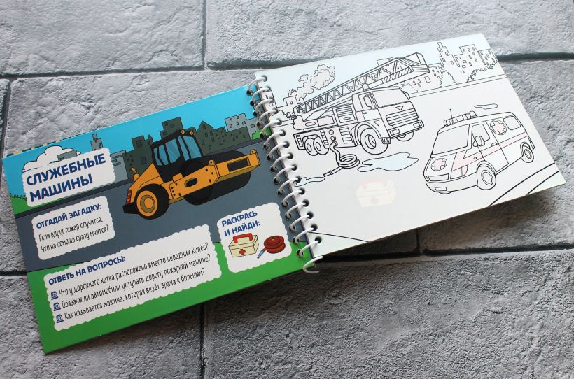 Представляем новое поколение раскрасок! Во-первых, вам больше не нужны цветные карандаши или фломастеры. Просто наполните специальный фломастер, входящий в комплект, водой и проведите им по страницам — они сразу же станут цветными. Поэтому раскраской смогут пользоваться даже самые маленькие дети, только начинающие держать ручку. Во-вторых, эта раскраска многоразовая. После высыхания страницы из прочного картона снова станут чёрно-белыми, и их можно раскрашивать повторно. В-третьих, эта раскраска развивающая: на каждом развороте есть задания на внимание и мышление, стихотворные загадки и даже скрытые предметы, появляющиеся из ниоткуда! Раскрашивая реалистичные иллюстрации, ваш малыш с интересом познакомится с разными видами машин.