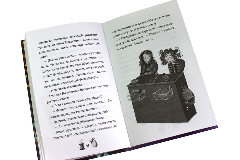 Яркая обложка приглашает вас наведаться в полную красок и магии волшебную обувную мастерскую! А внутри историю сопровождают оригинальные чёрно-белые иллюстрации.