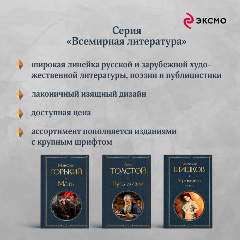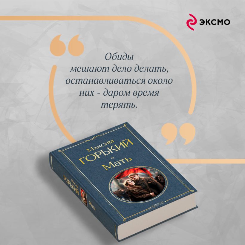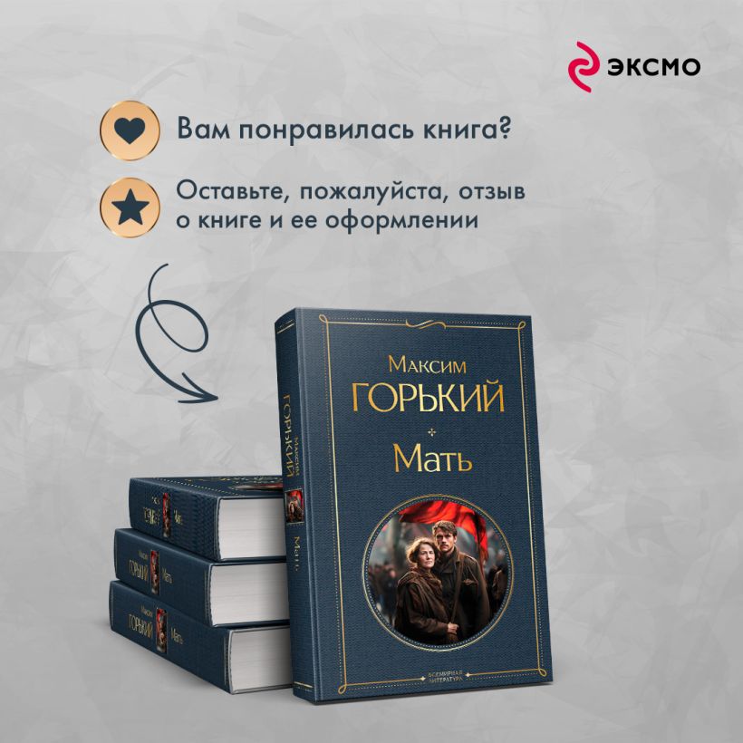 Максим Горький (1868—1936) — русский и советский писатель, поэт, прозаик, драматург, журналист и общественный деятель, публицист. Вышедший в 1906 году роман «Мать» рассказывает историю Пелагеи Ниловны, вдовы фабричного слесаря, чей сын пытается вырваться из беспросветного тяжелого окружения. Несмотря на опасения и страх, она постепенно проникается его революционными идеями и присоединяется к борьбе за права трудящихся.