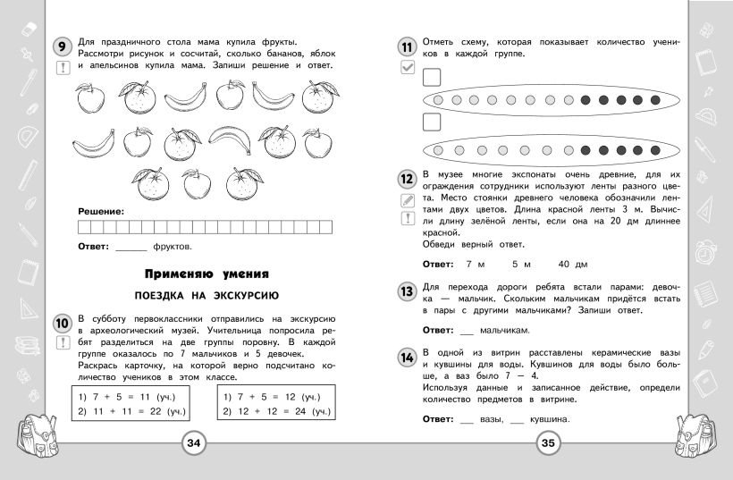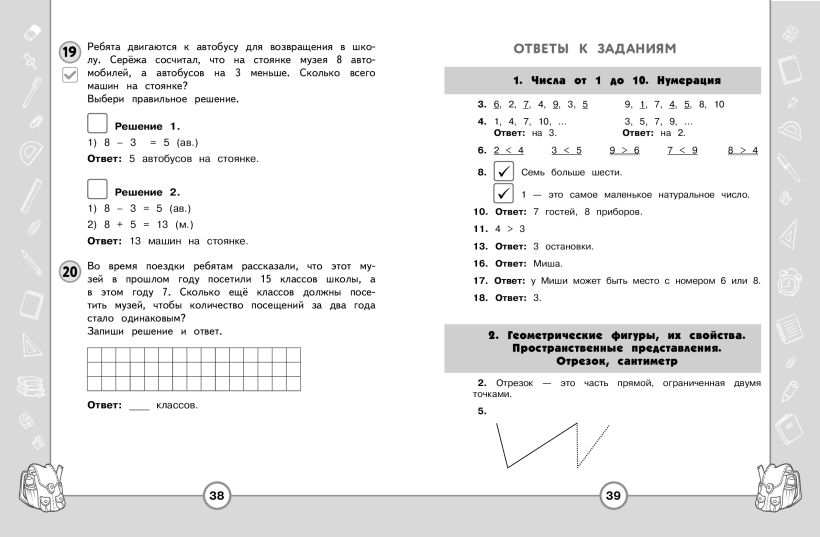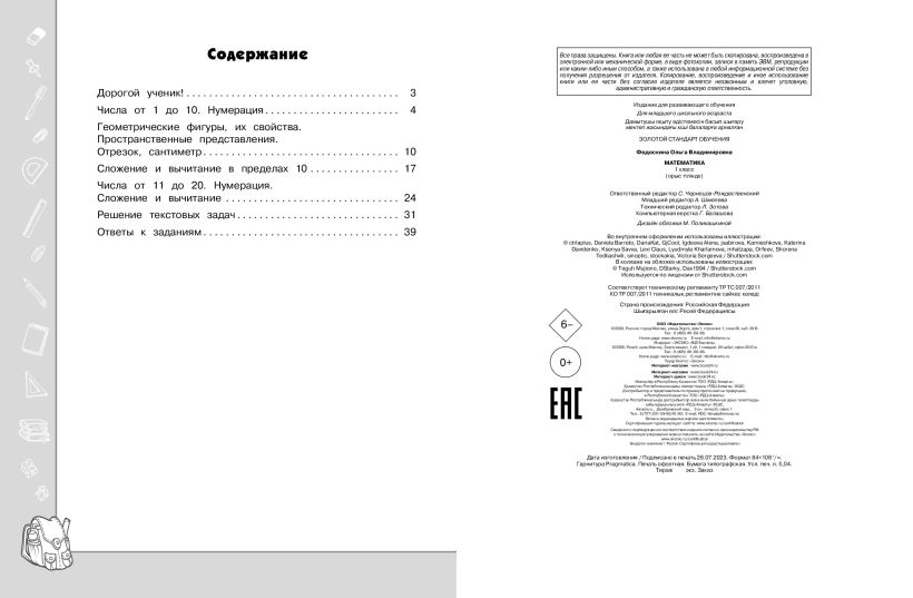 Данный тренажёр предназначен для учащихся 1 класса общеобразовательных школ. Основная цель этого пособия — закрепление знаний, полученных на уроках математики, и их применение не только во время контрольных или проверочных работ, но и в реальной жизни.