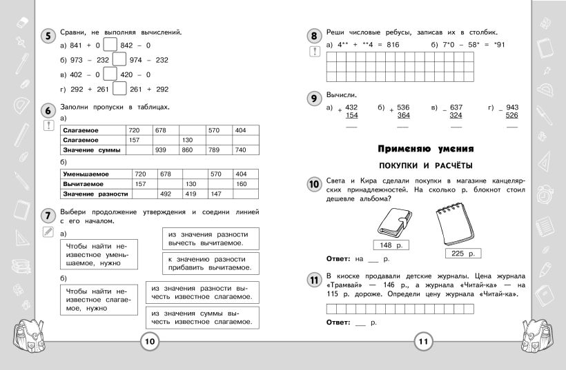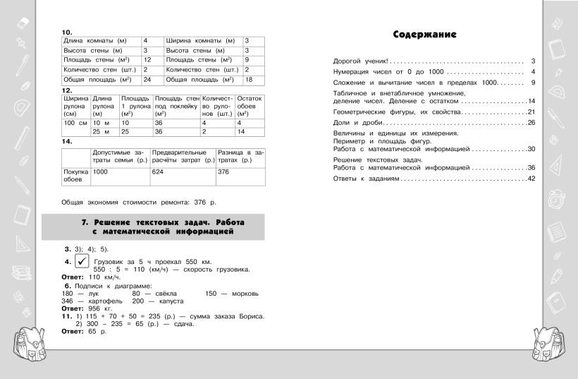 Данный тренажёр разработан для закрепления знаний и их применения. Оказывается, вычисления — это не только интересное занятие, но и очень полезный практический навык. Данный тренажёр создан с целью научить ученика третьего класса применять полученные знания в реальной жизни. Каждая тема содержит задания как на самопроверку знаний, так и на их применение для решения самых разных практических задач. Выполнение заданий будет способствовать развитию и математической грамотности школьника, и его функциональной грамотности.