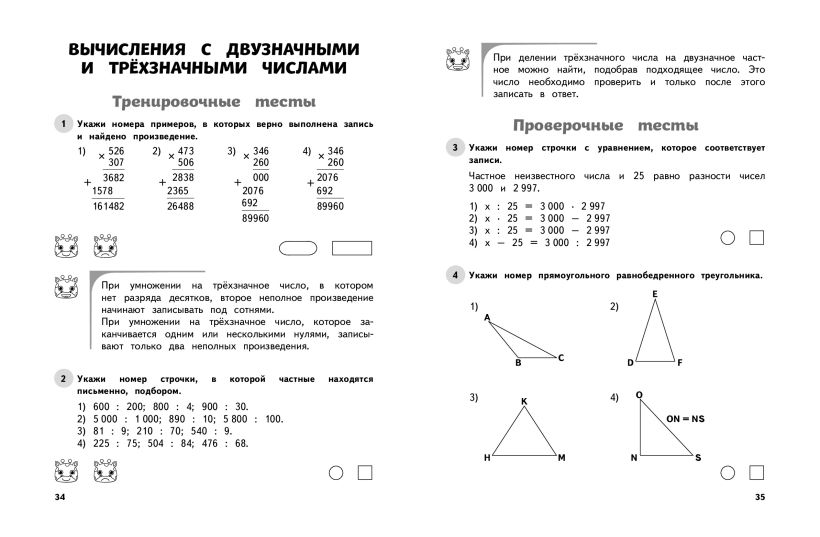 Тренажёры содержат тесты по важнейшим предметам начальной школы — математике и русскому языку. По каждой теме предлагается два вида тестов — тренировочные и проверочные. Выполняя тренировочные тесты, младшие школьники смогут не только выяснить свой уровень усвоения учебного материала, но и оперативно получить краткие и понятные разъяснения по проблемным темам. Эти подсказки ориентируют учеников на выбор нужного правила и дают прямые указания на верный способ выполнения задания. Проверочные тесты с ответами в конце книги выполняют контрольную функцию. Сборник тестов разработан с учётом всех требований ФГОС начального общего образования.