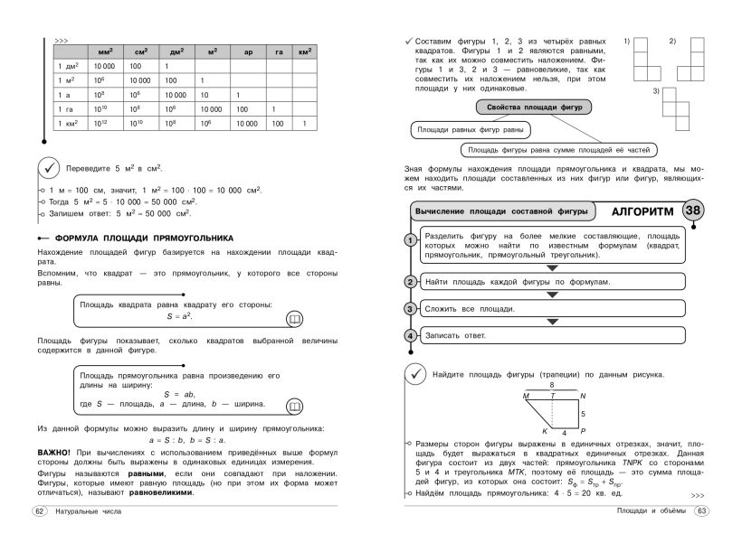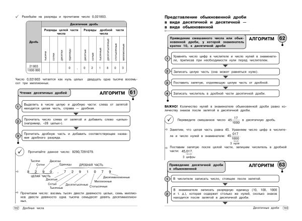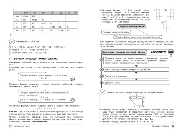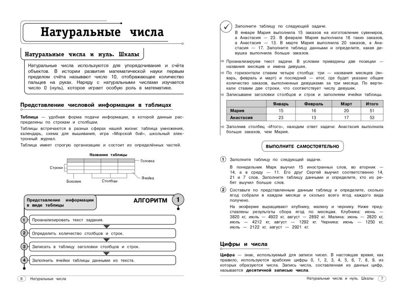 Перед алгоритмом приводится только важная теория по теме с необходимыми правилами и формулами. Сам алгоритм поделен на четкие шаги, следуя которым можно справиться с любой задачей по математике. После алгоритма расположены пример решения типовой задачи, а также задания для самостоятельного выполнения. Такой подход к занятиям поможет быстро выработать навык уверенного решения любых типов задач на уроках и контрольных.