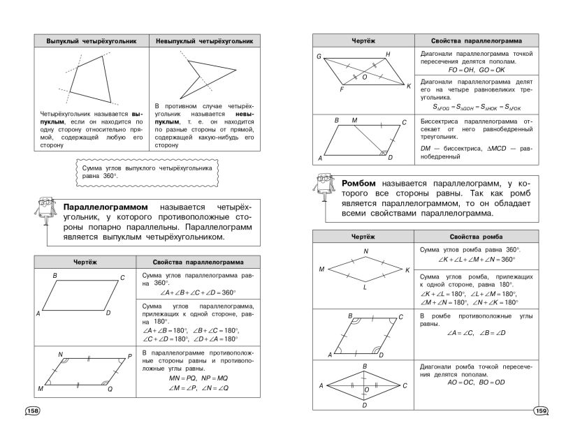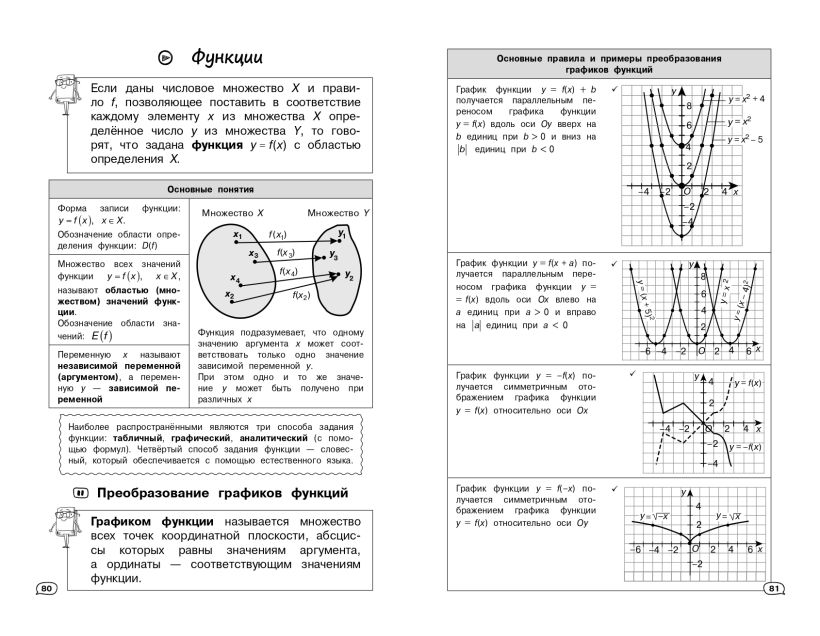 Пособие поможет быстро и эффективно подготовится к урокам, различным формам текущего и промежуточного контроля, а также к экзаменам. В книге в наглядной и доступной форме приводятся основные сведения за весь школьный курс математики. В громоздких учебниках порой бывает сложно найти ответ на какой-то конкретный вопрос. А в данном издании представлена действительно нужная и систематизированная информация, материал изложен последовательно, от простого к сложному, дополняется иллюстрациями, примерами, наглядными схемами и таблицами. В этой книжке для школьников можно найти все основные разделы предмета: «Алгебра», «Уравнения и неравенства», «Функции», «Начала математического анализа», «Геометрия», «Элементы комбинаторики, статики и теории вероятностей». Справочник обеспечит знание и понимание всех, даже самых сложных тем школьной программы. В нем каждый ученик 5-6-7-8-9-10-11 классов найдет много полезного для своего образования, обретет уверенность на уроках, контрольных, ОГЭ и ЕГЭ. Пособие окажет помощь родителям во время занятий с детьми.