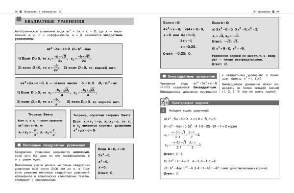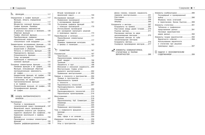 Информация представлена в максимально удобной и эффективной для изучения и запоминания форме — в схемах и таблицах, что обеспечит плодотворную и быструю подготовку к урокам, контрольным и различным экзаменам. В пособии можно найти все основные разделы предмета: «Арифметика», «Алгебра», «Геометрия», «Начала математического анализа», «Комбинаторика», «Теория вероятностей и статистика».