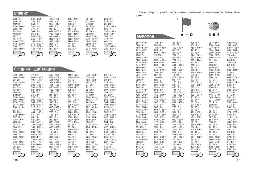 Научиться мгновенно считать в уме, не делая при этом ошибок, может любой школьник. Для этого нужно систематически и в большом объёме выполнять задания на каждое математическое действие. В этом тренажёре ученику предлагается решить 30 000 примеров по всем темам программы по математике за курс 3 класса. Выполнив такое количество примеров, школьник надёжно закрепит полученные знания и доведёт навык устного счёта до полного автоматизма. Благодаря регулярной работе с тренажёром третьеклассник сможет оценить уровень своих знаний и заметно его повысить.