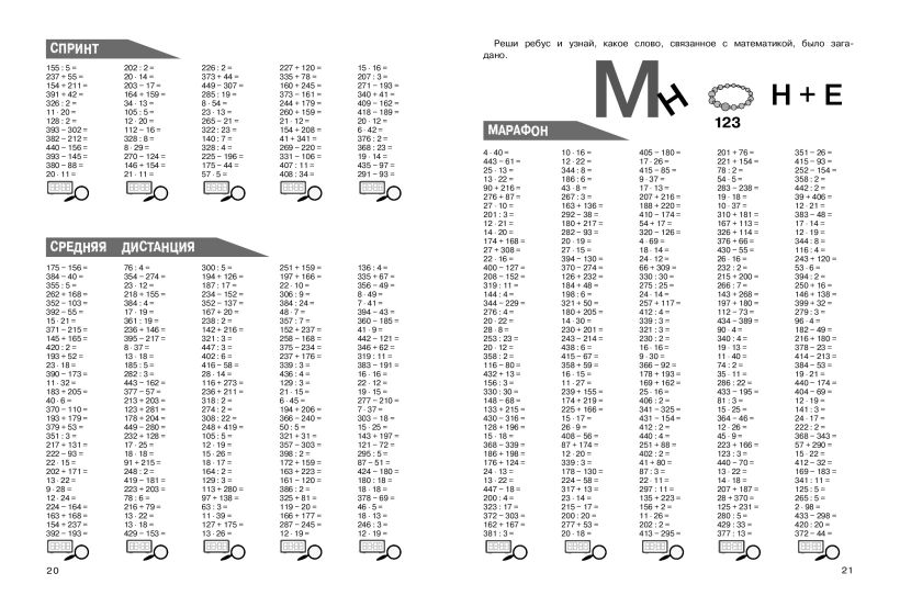 Научиться мгновенно считать в уме, не делая при этом ошибок, может любой школьник. Для этого нужно систематически и в большом объёме выполнять задания на каждое математическое действие. В этом тренажёре ученику предлагается решить 30 000 примеров по всем темам программы по математике за курс 4 класса. Выполнив такое количество примеров, школьник надёжно закрепит полученные знания и доведёт навык устного счёта до полного автоматизма. Благодаря регулярной работе с тренажёром четвероклассник сможет оценить уровень своих знаний и заметно его повысить.