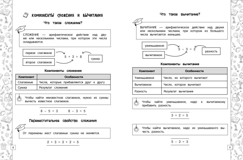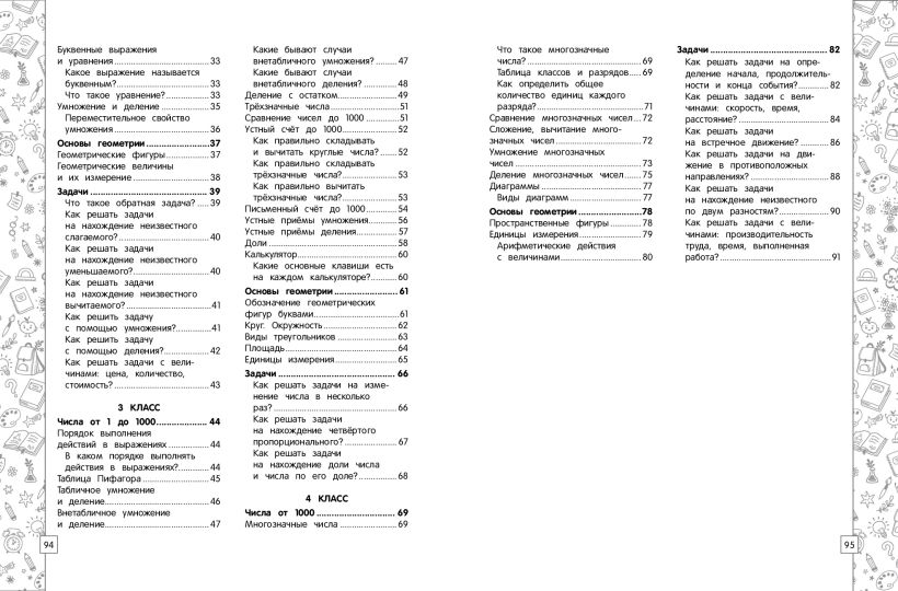Справочник для учеников 1, 2, 3 и 4 класса — это универсальный помощник для изучения и закрепления всех правил по математике за курс начальной школы. Эта книга станет незаменимым инструментом для школьников, их родителей и педагогов. Благодаря наглядным схемам, таблицам, картам памяти и иллюстрациям справочник поможет легко усвоить программу и подготовиться к контрольным работам, самостоятельным заданиям и итоговым тестам, включая ВПР. Правила математики объясняются в лёгкой и доступной форме, что позволяет ученикам начальной школы лучше усваивать информацию. На каждый конкретный вопрос даётся понятный и исчерпывающий ответ. Справочник хорошо структурирован, позволяет удобно и быстро ориентироваться по темам, поэтому станет универсальной шпаргалкой для подготовки к урокам. Справочник разработан в полном соответствии с требованиями ФГОС начального общего образования. Это прекрасный подарок детям на 1 сентября, который поможет им успешно справляться с домашними заданиями и освоить программу математики. Книга полезна не только ученикам начальной школы, но и их родителям, желающим помочь с выполнением домашних заданий, а также педагогам, стремящимся сделать уроки математики более наглядными и интересными. Этот универсальный справочник — отличный помощник для подготовки к ВПР, контрольным и самостоятельным работам!