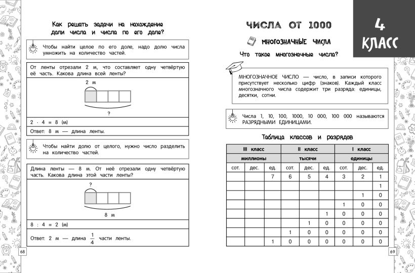 Пособие от издательства «Эксмо», соответствующее ФГОС, разработано специалистом с многолетним опытом работы и станет отличным помощником для учеников 4 класса в отработке умений и навыков, полученных на уроках математики. Выполнение большого количества арифметических действий в пределах 1 000 000, решение уравнений и разных типов задач, величины и действия с ними дадут возможность школьникам в дальнейшем избежать вычислительных ошибок и довести навыки счёта до автоматизма. Занимаясь по книге, учащиеся научатся анализировать информацию и понимать учебную задачу, а также смогут закрепить пройденный материал, восполнить пробелы в знаниях, развить математические способности, повысить успеваемость по предмету. Задания в тренажере построены таким образом, чтобы не повторять, а дополнять упражнения, которые предлагаются в школе. Благодаря этому его можно использовать в сочетании с любыми из существующих учебников по математике. Кроме того, в серию входят и пособия по русскому языку для 1, 2, 3 и 4 класса. Только постоянная практика позволит школьнику уверенно чувствовать себя на уроках и получать отличные оценки.