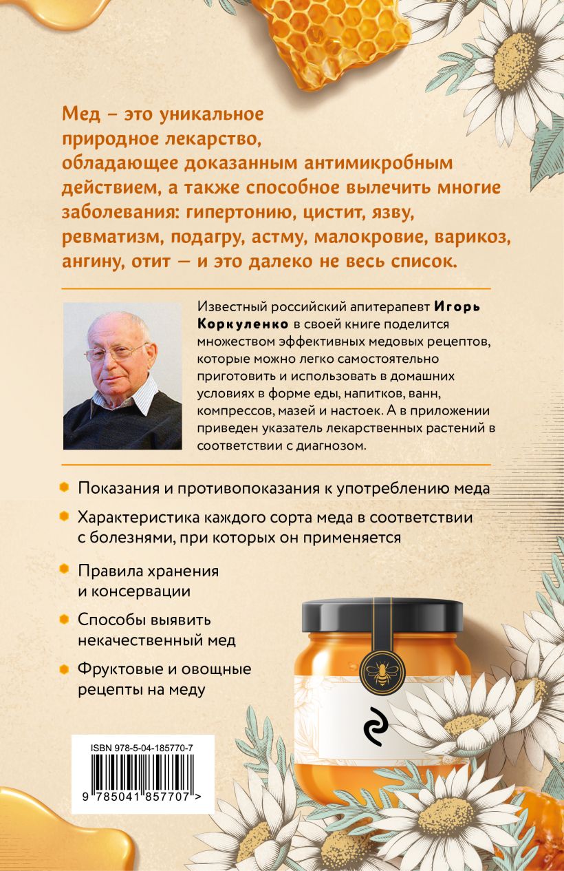 Автор книги — Игорь Коркуленко, д.м.н., известный российский специалист по лечению продуктами пчеловодства. На страницах издания вы найдете показания и противопоказания к употреблению меда, характеристики разных сортов меда, фруктовые и овощные рецепты на меду, а также рецепты с использованием разных продуктов пчеловодства, таких как маточное молочко, прополис. Вы узнаете, как использовать мед для лечения и профилактики заболеваний сердечно-сосудистой системы, органов дыхания, ЖКТ и при других нарушениях в работе организма. В конце книги имеется короткое приложение со списком лекарственных растений по диагнозу и воздействию.