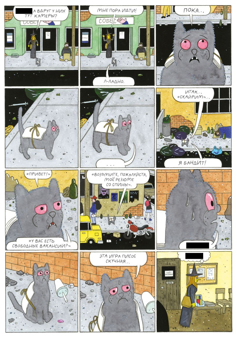 Боишься публичных выступлений, высоты, ответственности? А еще насекомых, грозы или монстров под кроватью? Каждый сталкивался с такими страхами и часто прятался, вместо того чтобы посмотреть им в глаза. Как побороть свои страхи и пройти мягкую терапию? Тебе поможет… кот! Он любит устраивать суету, гоняться за едой и ворчать на хозяйку, но при этом делится психологическими советами, словно заправский психолог. Эту необычную историю создала молодая и талантливая девушка — Лапка Художника — иллюстратор и будущий психолог. Она ведет веселый блог с комиксами и короткими жизненными роликами, в которых ты точно узнаешь себя. Там и кот, скачущий по ночам, и комар, сводящий с ума, и мозг, застрявший на старой песне из рекламы. Котокомикс для тех, кто: - устал беспокоиться и тревожиться по пустякам; - хочет понять свои эмоции без скучных теорий; - готов прислушаться к советам кота-психолога; - обожает юмор, комиксы и жизненные зарисовки. Каждая глава обозначена определенным цветом, поэтому ты никогда не запутаешься, где именно находишься: в зеленой главе с детскими страхами или в фиолетовой — с экзистенциальными. «Эта книга как теплый разговор с собой в моменты тревоги. С юмором, легкостью и неожиданной глубиной она помогает взглянуть на страхи по-другому — мягко, бережно и с улыбкой. Кот-психолог протянет свою лапку помощи. И расскажет, как легче и спокойнее воспринимать эту жизнь». — Любовь Стяпшина, автор и иллюстратор метафорических открыток «Дом твоего сердца» «Добрые комиксы о девочке, которая боялась всего на свете. Но, ура, рядом появляется кот: пушистый, спокойный и мудрый. Он не смеётся над страхами, а объясняет, что всё не так уж страшно. Очень милая, тёплая и поддерживающая книжка. Особенно когда тревожно и хочется, чтобы кто-то просто был рядом». — Алла Гончарова, автор проекта Curavamnedura