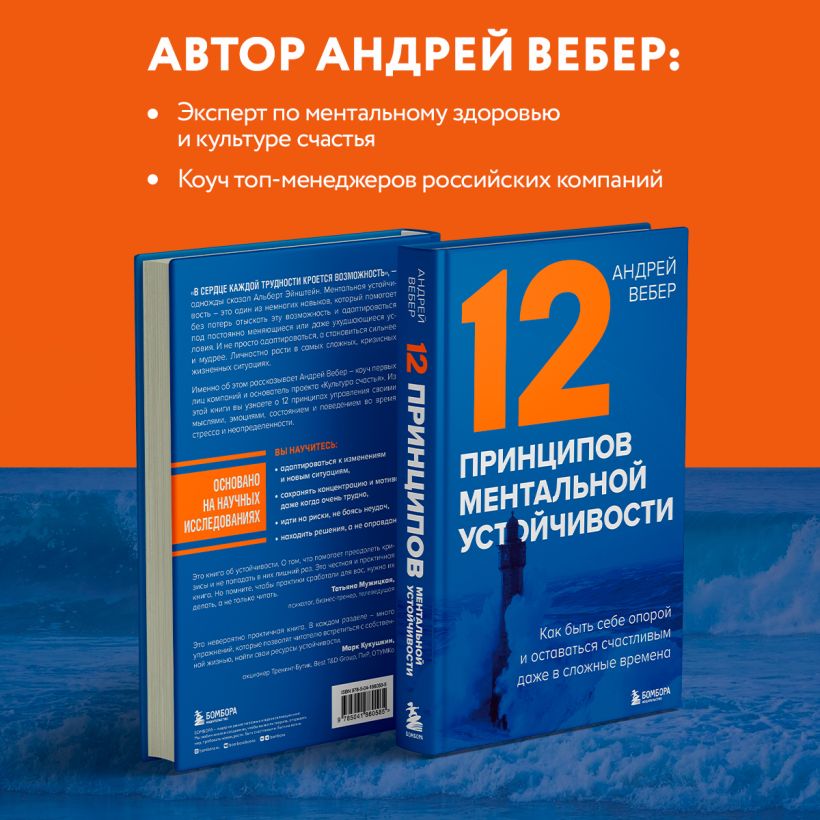 «Эта уникальная книга знакомит с системой из 12 составляющих ментальной устойчивости. Ценность книги в том, что помимо теоретической части, содержащей множество ссылок на научные исследования, в ней есть и практические техники, эффективность которых автор проверил на себе. Андрей Вебер является реальным примером позитивно мыслящего человека, заряжающего окружающих своим оптимизмом. Именно личная составляющая заставляет нас поверить в его рекомендации». — Елена Речкалова, член советов директоров крупнейших банков, advisory boards и попечительских советов, executive mentor по темам стейкхолдер-менеджмент, стратегическое лидерство и построение карьерного капитала