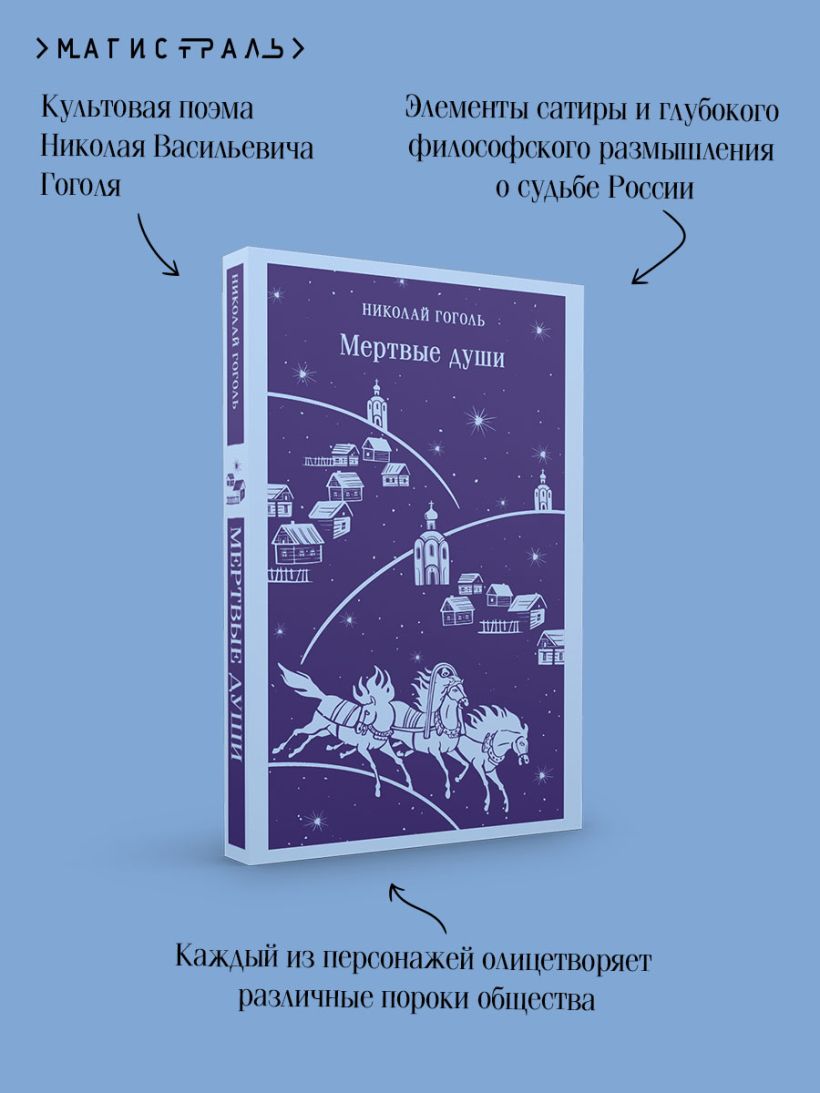 «Мёртвые души» — культовая поэма Николая Васильевича Гоголя (1809—1852), сочетающая в себе элементы сатиры и глубокого философского размышления о судьбе России.