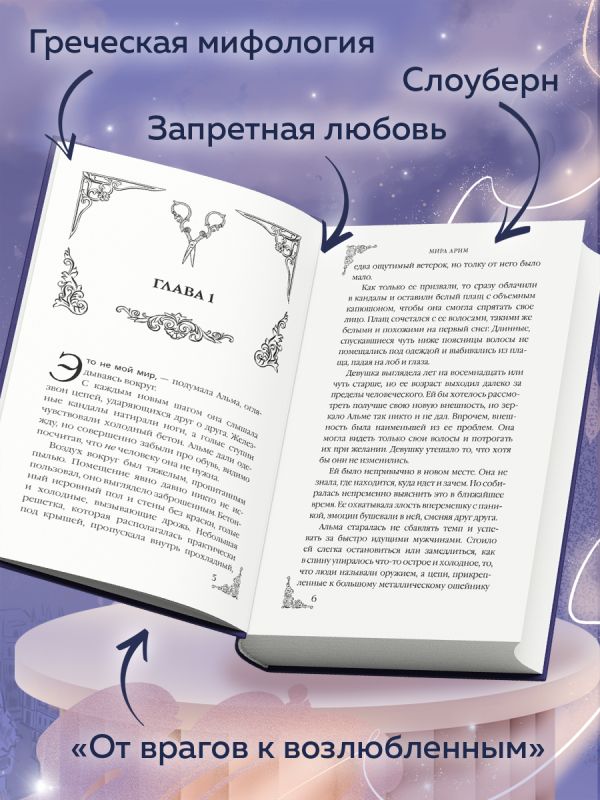 Первая книга серии приключенческого фэнтези «Сёстры судьбы» Миры Арим понравится всем поклонникам греческой мифологии, слоуберна, тропов «от врагов к возлюбленным» и «запретная любовь».