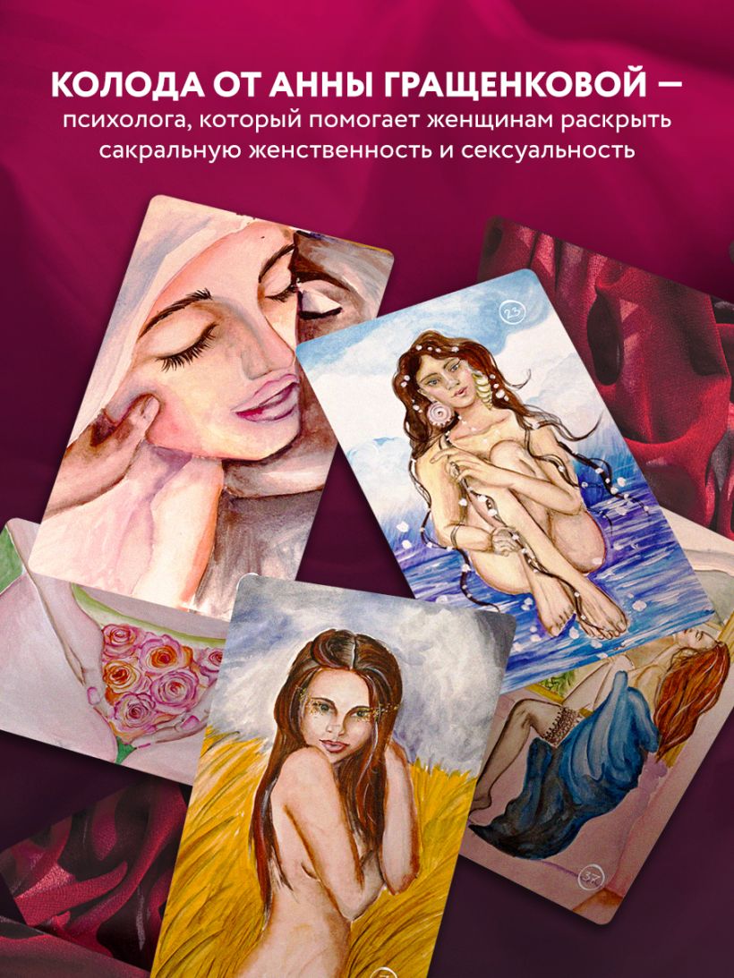 Анна Гращенкова — психолог, который помогает раскрыть вашу сакральную женственность и сексуальность. С помощью ее авторской колоды карт вы сможете почувствовать себя умиротворенной, гармоничной и манящей, познаете истинную себя и привлечете в свою жизнь все желаемые обстоятельства.