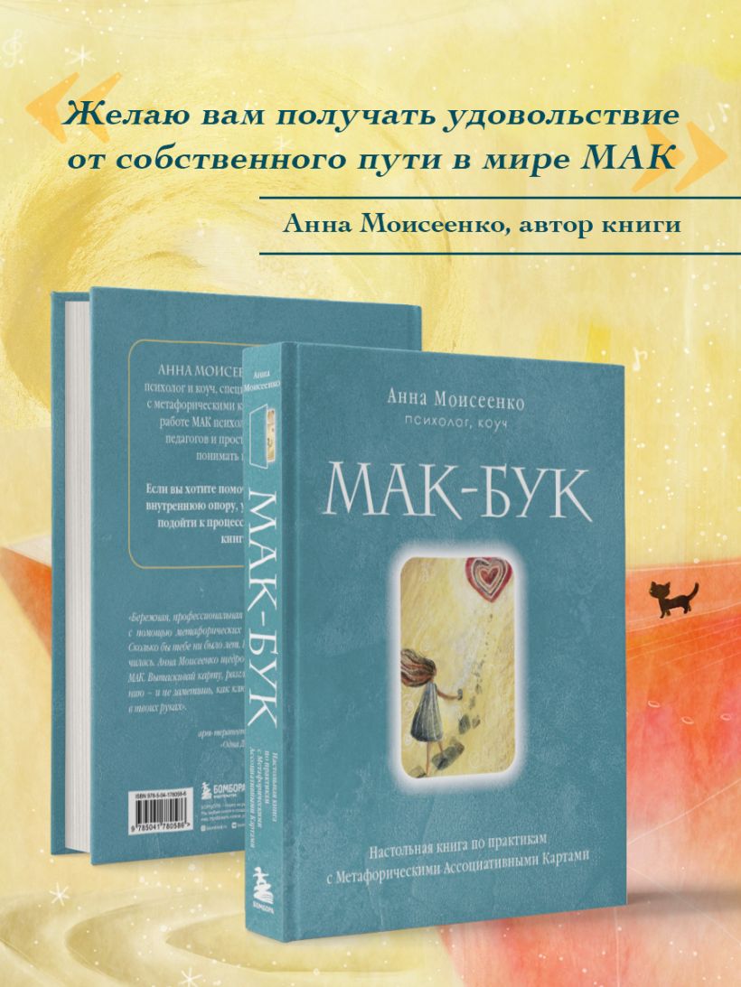 «Бережная, профессиональная и очень "вкусная" книга о том, как с помощью метафорических карт найти опору в самом себе. Сколько бы тебе ни было лет. Какая бы жизнь с тобой ни приключилась. Анна Моисеенко щедро делится секретами использования МАК. Вытаскивай карту, разглядывай, путешествуй по подсознанию — и не заметишь, как ключи от закрытых дверей окажутся в твоих руках». — Анна Фенина, арт-терапевт, автор книг целебных сказок для взрослых «Одна Девочка собирала стаю» и МАК «Сила Стаи»