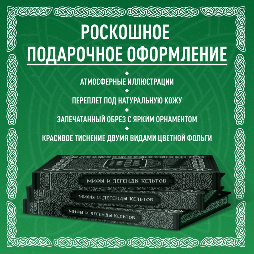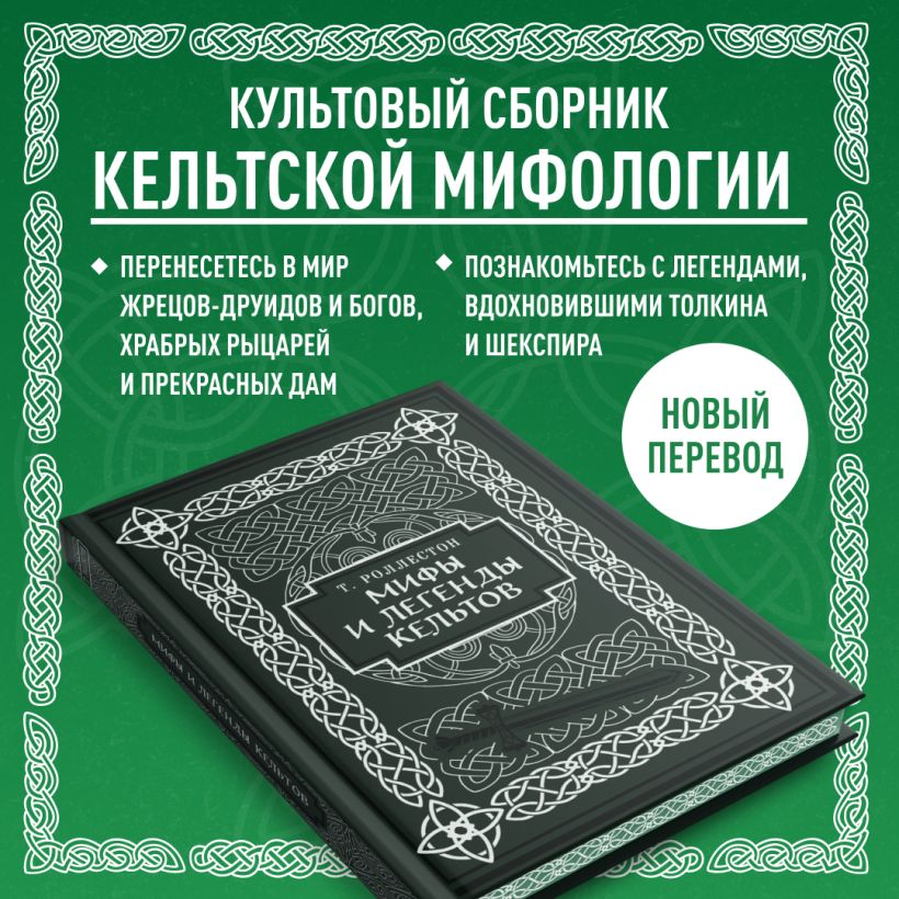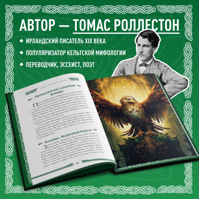 Известный писатель и переводчик XIX века Томас Роллестон кропотливо собрал и систематизировал основные легенды и мифы ирландского и валлийского эпосов. В сборник вошли сказания Уладского цикла, где действует, пожалуй, самый известный герой ирландских саг — могучий Кухулин, предания Оссиановского цикла, посвященные ирландскому герою Финну Маккулу и рассказанные легендарным бардом Оссианом. Особое место в книге занимают мифы и легенды Уэльса из средневекового валлийского цикла «Мабиногион» — герои этого эпоса стали прообразами легендарного короля Артура, волшебника Мерлина, рыцарей Круглого стола и других популярных героев.