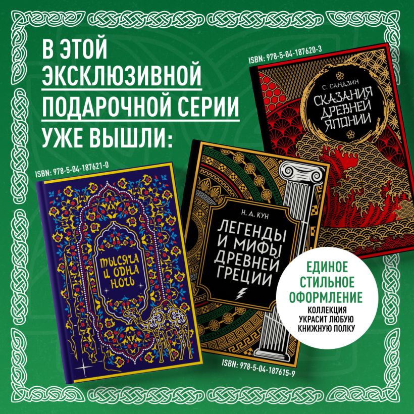 Книга продолжает коллекцию подарочных изданий по мифологии, куда также вошли «Легенды и мифы Древней Греции» Н. А. Куна, легендарный сборник арабских сказок «Тысяча и одна ночь» и «Сказания Древней Японии» классика японской детской литературы Садзанами Сандзина.