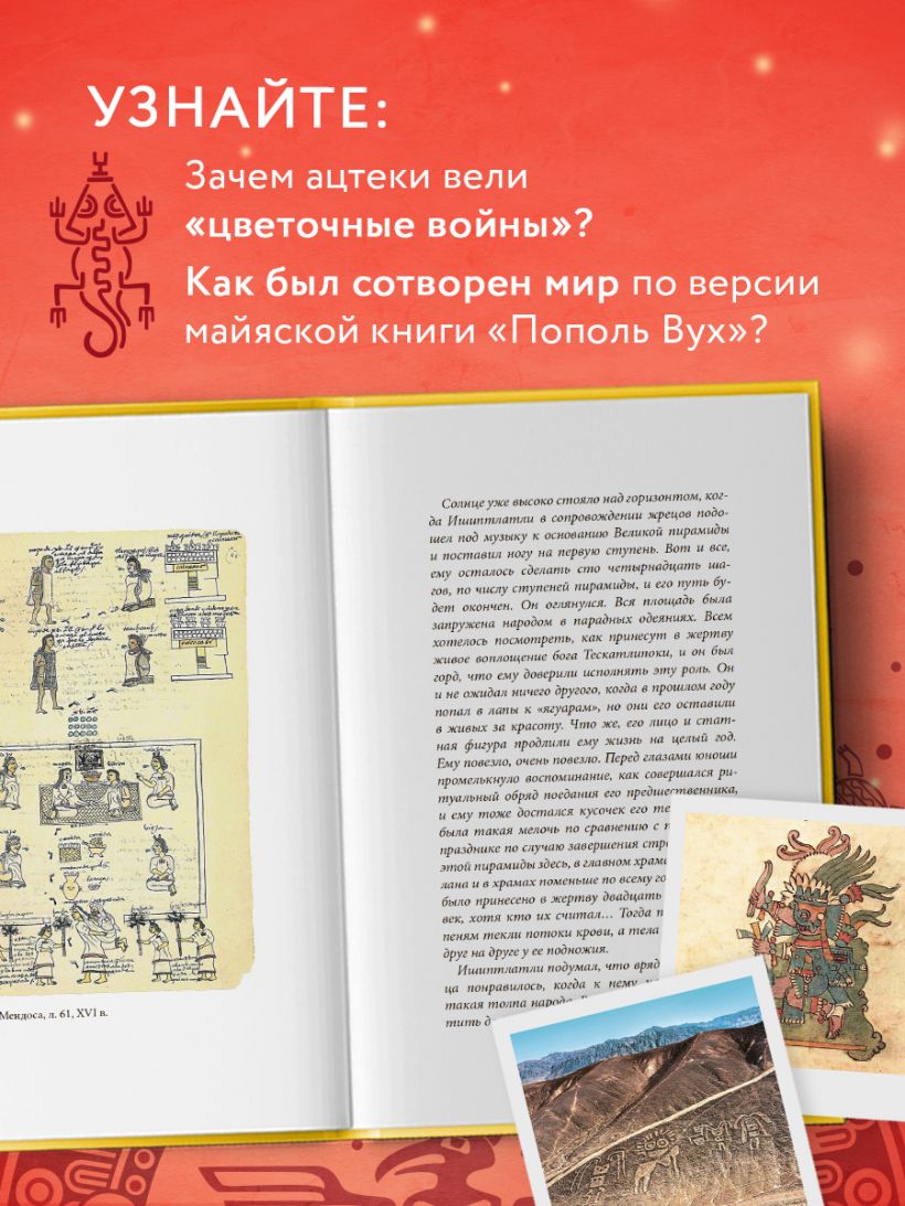 На эти и другие вопросы вы найдете ответы на страницах этой книги, а цветные и черно-белые иллюстрации, QR-коды, ведущие на страницы музеев и энциклопедий, дополнят путешествие по легендарным цивилизациям Мезоамерики!