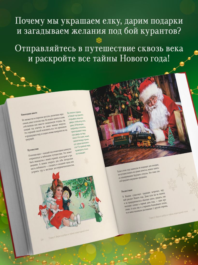 Эта книга — настоящий путеводитель в мир новогодней магии. Винтажное оформление, чудесные рисунки и яркие фотографии увлекут за собой в атмосферу праздника, а увлекательные истории приоткроют дверь в тайну Нового года. Это прекрасный подарок, который объединит всю семью.
