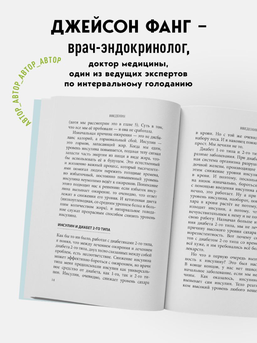 Почему программа «меньше ешь — больше двигайся» совершенно не работает, когда речь идет о лишнем весе. Как тело использует калории, когда постоянно получает избыток сахара. В чем связь между диабетом второго типа и диетой. Врач-эндокринолог, нефролог Джейсон Фанг заставляет нас по-новому взглянуть на забытое искусство голодания. Пиры обязательно должны сменяться периодами ограничений в пище. Именно в это время клетки мозга и тела обновляются, накопившийся «мусор» выбрасывается, а гормон роста (тот самый, что ускоряет старение) на время перестает вырабатываться. Автор предлагает 4 протокола голодания, подходящего под различные потребности, и описывает пошаговый план перехода в состояние кетоза и выхода из него.
