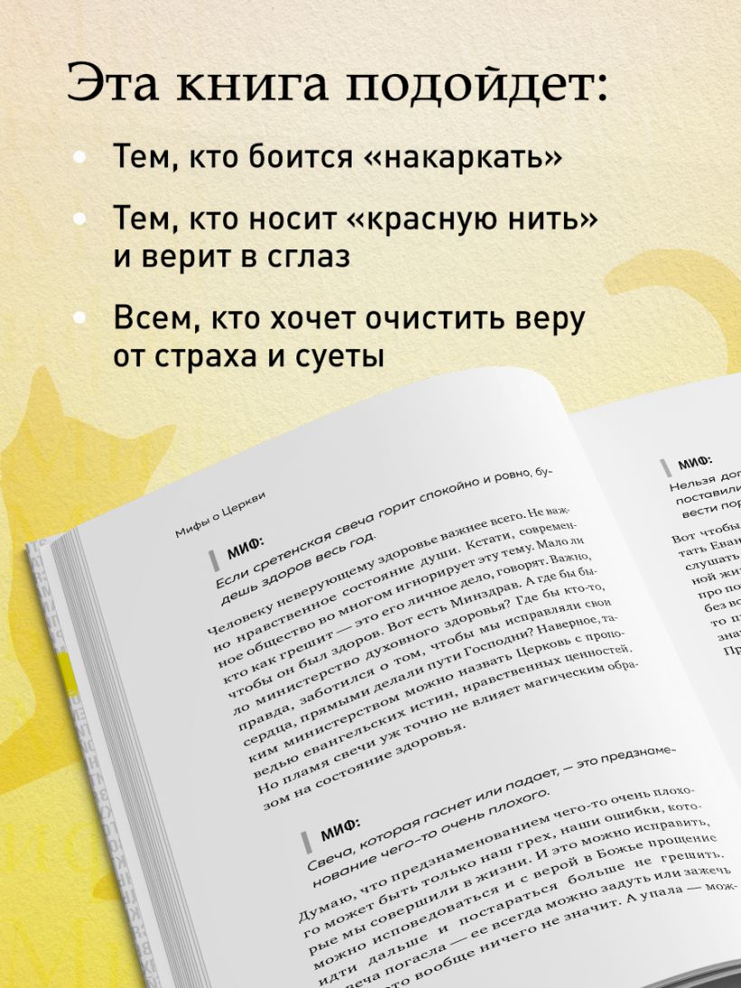 Духовная жизнь человека, даже воцерковленного, сопряжена со множеством вызовов и испытаний, мифы и суеверия преграждают путь к Богу. За долгие века своего существования Церковь боролась со множеством заблуждений, но некоторые оказывались настолько живучими, что искоренить их до конца не удается и по сей день. Впрочем, эта работа успешно продолжается, и ее частью стала данная книга, где представлены — и развенчаны — самые разные мифы и суеверия, имеющие отношение к Церкви, от вполне безобидных «народных примет» до неверно воспринятых богословских догматов.