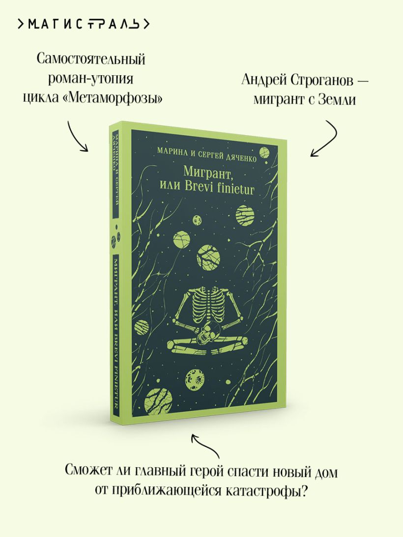 «Мигрант, или Brevi Finietur» — третий, самостоятельный роман-утопия цикла «Метаморфозы», открытого бестселлером «Vita Nostra».