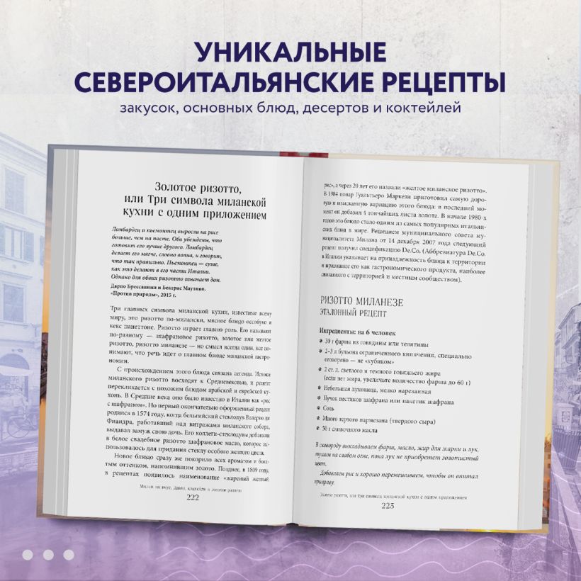 Пришло время посмотреть на Милан с другой стороны. Теперь и отныне это не только столица моды, но и столица еды! Найдите несколько часов, чтобы посидеть в уютном кресле-качалке с вином и сыром, а после отправляйтесь бродить по улочкам, где когда-то гулял Леонардо. А если это путешествие кажется скучным, то вас будут ждать в Бергамо на ужин с кроликом по-бергамасски!