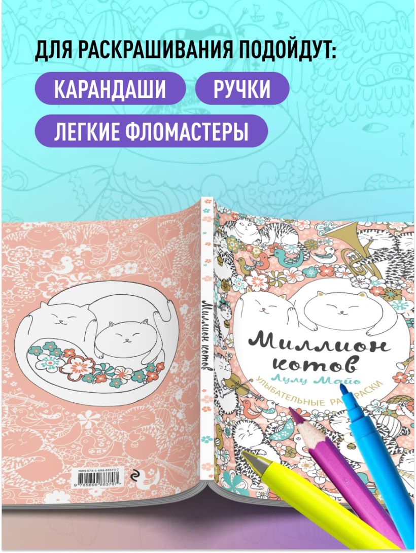 Прекрасный подарок любителям милых котиков и очаровательных раскрасок — творения Лулу Майо никого не оставят равнодушным!
