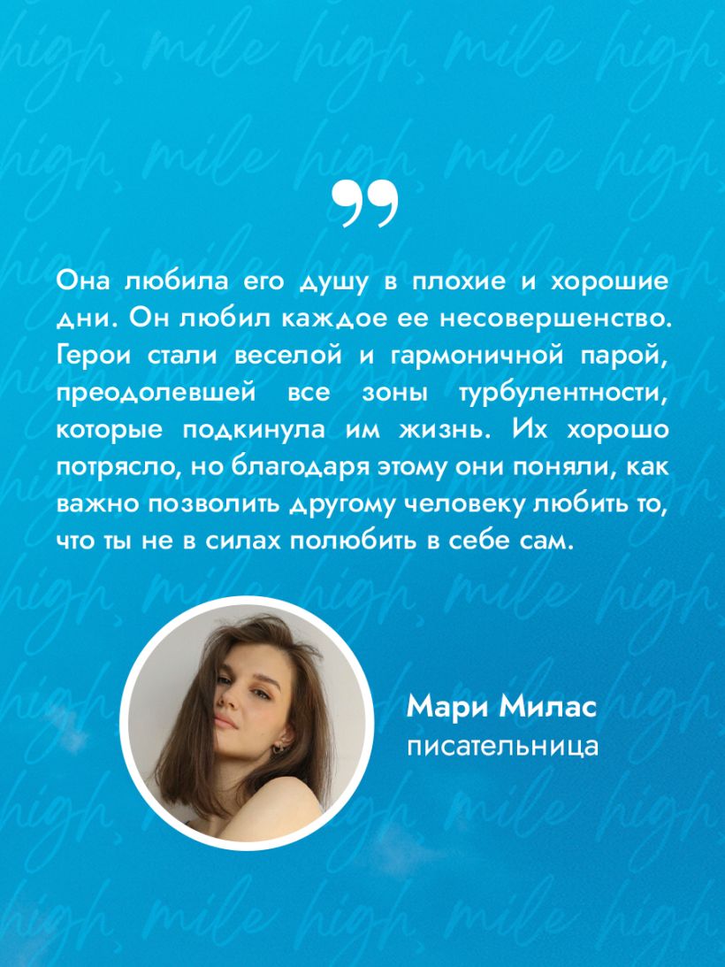 Герои стали веселой и гармоничной парой, преодолевшей все зоны турбулентности, которые подкинула им жизнь. Их хорошо потрясло, но благодаря этому они поняли, как важно позволить другому человеку любить то, что ты не в силах полюбить в себе сам». — Мари Милас, писательница @mari_milas