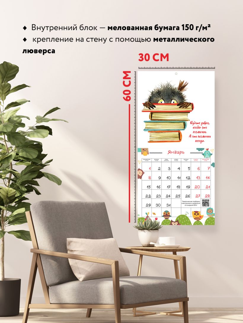 Наши настенные календари отличаются высоким качеством исполнения! Тщательно подобранные иллюстрации, напечатанные на глянцевой бумаге высочайшего качества, станут настоящим украшением дома, а в календарной сетке найдется место для ваших планов: большие клетки позволят делать записи и организовать свой год! В календаре также отмечены все государственные праздники.