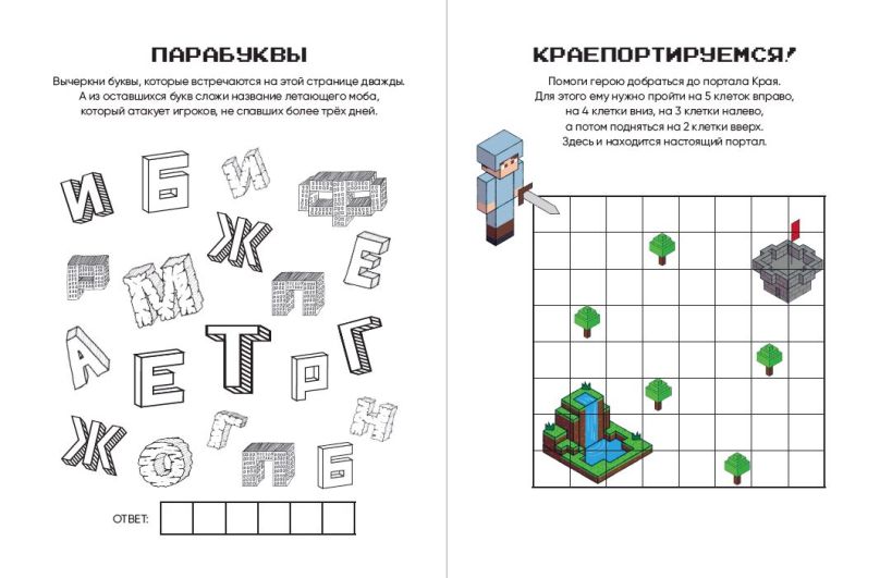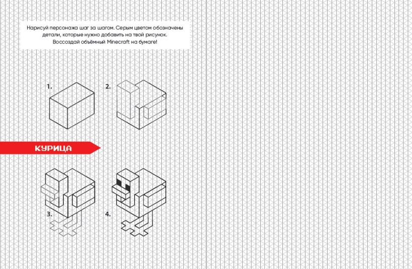 Вдохновляйтесь любимыми персонажами, придумывайте веселые сценки, рисуйте, раскрашивайте и создавайте свою собственную квадратную Вселенную в стиле Майнкрафт!