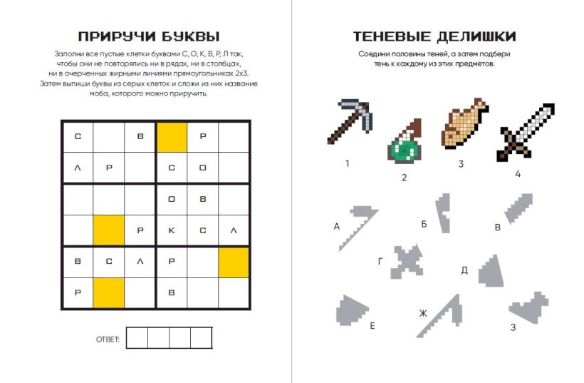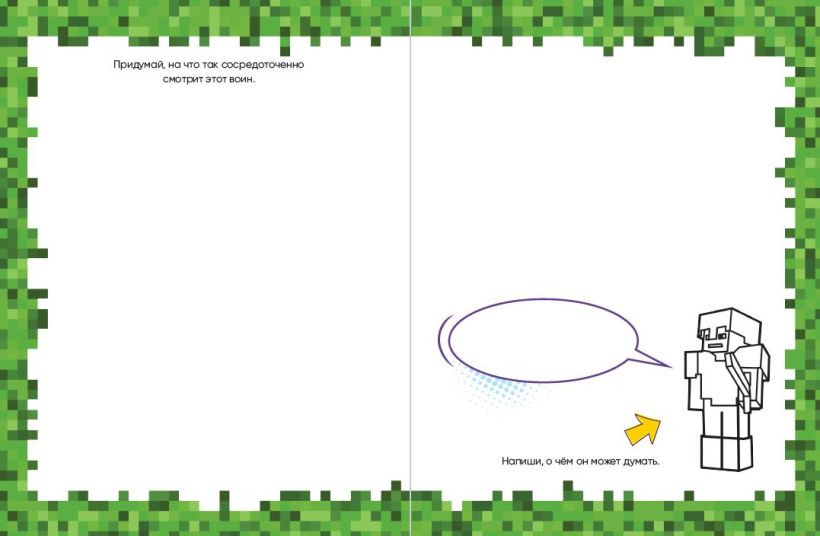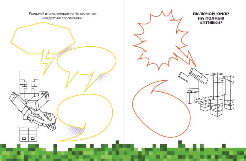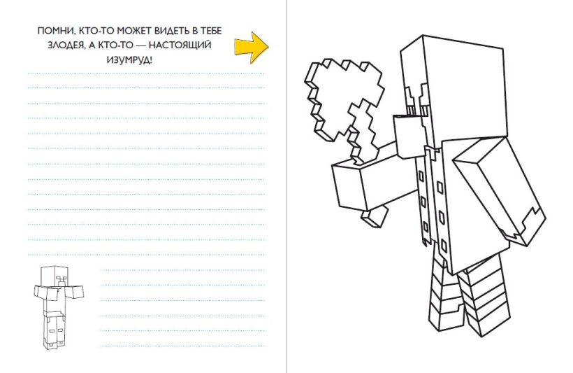 Вдохновляйтесь любимыми персонажами, придумывайте веселые сценки, рисуйте, раскрашивайте и создавайте свою собственную квадратую Вселенную в стиле Майнкрафт!