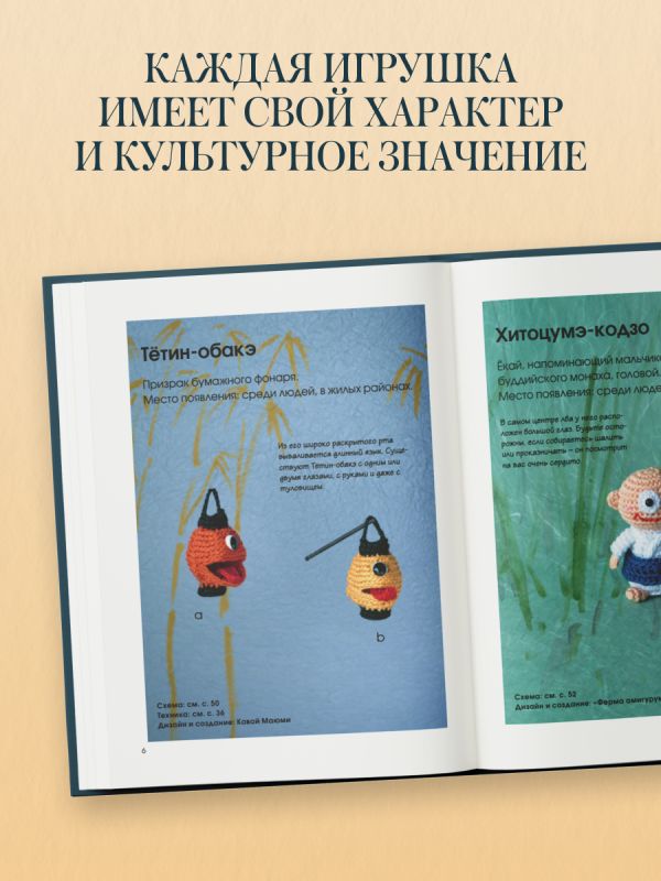 Вас ждет встреча с 22 таинственными духами — от знаменитого водяного Каппы и очаровательного зонтика-призрака до загадочной лисицы-кицунэби, двухвостого кота Нэкоматы и пушистой ласки, которая живет в ветре. Каждый персонаж сопровождается подробной схемой вязания, понятной инструкцией по сборке и оформлению, а также маленькой историей, раскрывающей характер и культурный смысл образа.