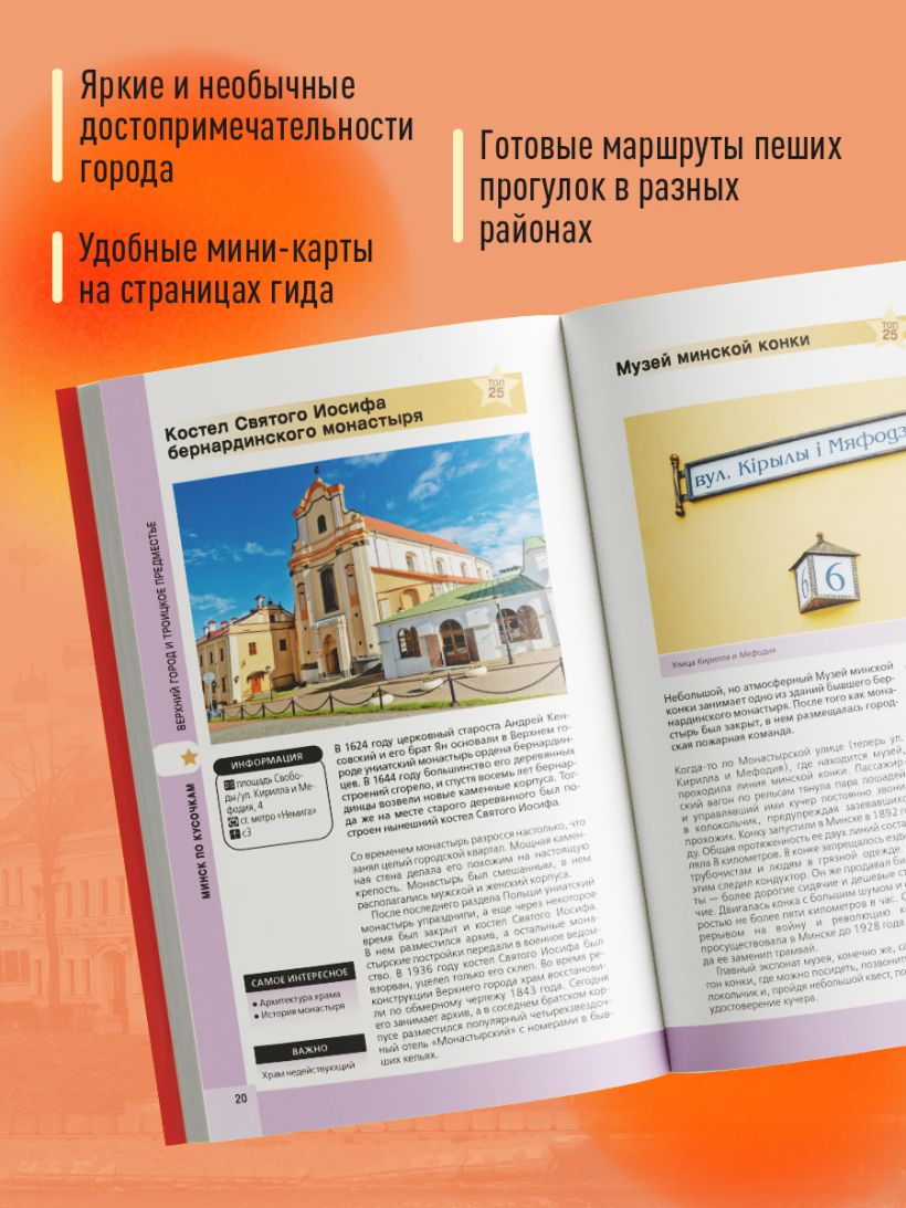 Богатая культура, европейские города, невероятной красоты костелы, вкусная еда, щедрое гостеприимство и удивительное разнообразие природы — все это Беларусь! Отправляйтесь в незабываемое путешествие по стране вместе с нашим «Оранжевым гидом»! В нем содержится актуальная и полезная информация о главных городах страны, различные маршруты на любой вкус, подсказки, что делать, если идет дождь, или где искать лучшие смотровые площадки, а также множество полезных авторских советов. Вас ждут прогулки по Минску, Бресту, Витебску, Гомелю, Гродно, Могилеву, а также информация про самые красивые замки, храмы и заповедники. Осталось только выбрать маршрут на свой вкус! Сориентироваться на местности помогут удобные карты, расположенные на страницах путеводителя. Вся информация актуальна на 2025 год.