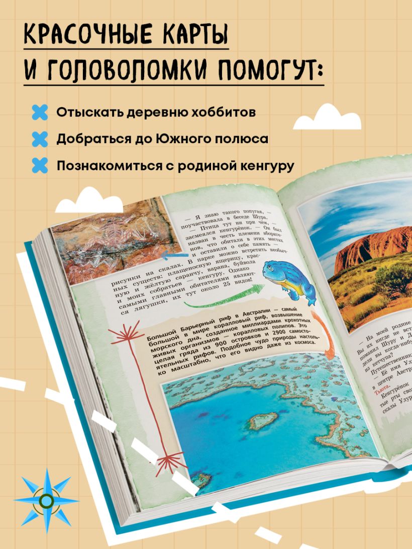 Хорошо ориентироваться в путешествиях вам помогут красочные карты. Кроме того, в путеводителе вы найдете разнообразные задания и головоломки, с ними узнавать мир станет увлекательнее.