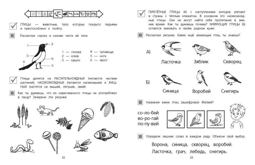 Благодаря пособию ребёнок познакомится с миром животных и растений, узнает интересные факты о профессиях, поймёт, как устроено тело человека, расширит кругозор, разовьёт внимание и память, мышление и связную речь.