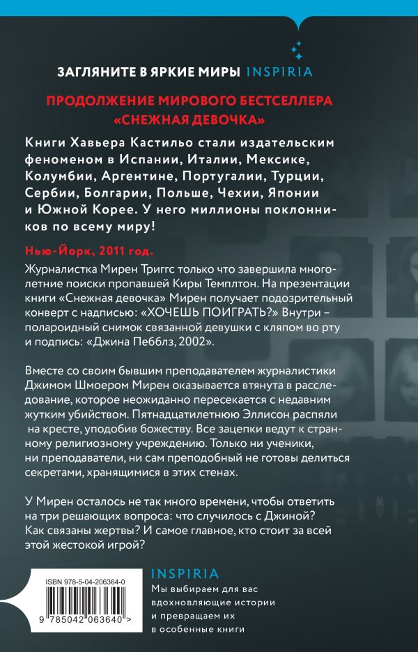 Нью-Йорк, 2011 год. Журналистка Мирен Триггс только что завершила многолетние поиски пропавшей Киры Темплтон. На презентации книги "Снежная девочка" Мирен получает подозрительный конверт с надписью "ХОЧЕШЬ ПОИГРАТЬ?". Внутри – полароидный снимок связанной девушки с кляпом во рту и подпись "Джина Пебблз, 2002".