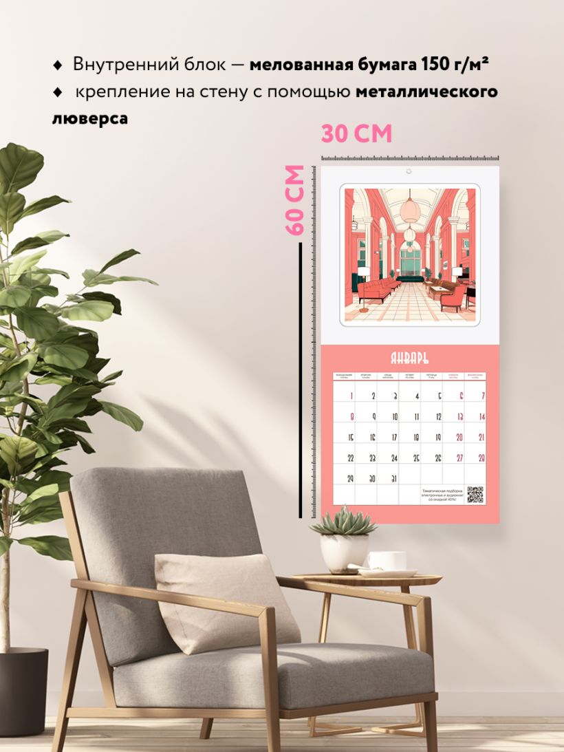 - Тип календаря — настенный перекидной.