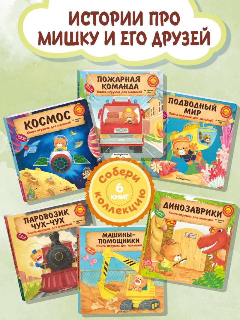 «Книжки-игрушки для малышей» — это целая серия интерактивных изданий с подвижными элементами для самых маленьких! Крутящиеся колёсики и выдвижные панели с картинками дополняют сюжет новыми подробностями. Играем, тренируем пальчики и запускаем речь!