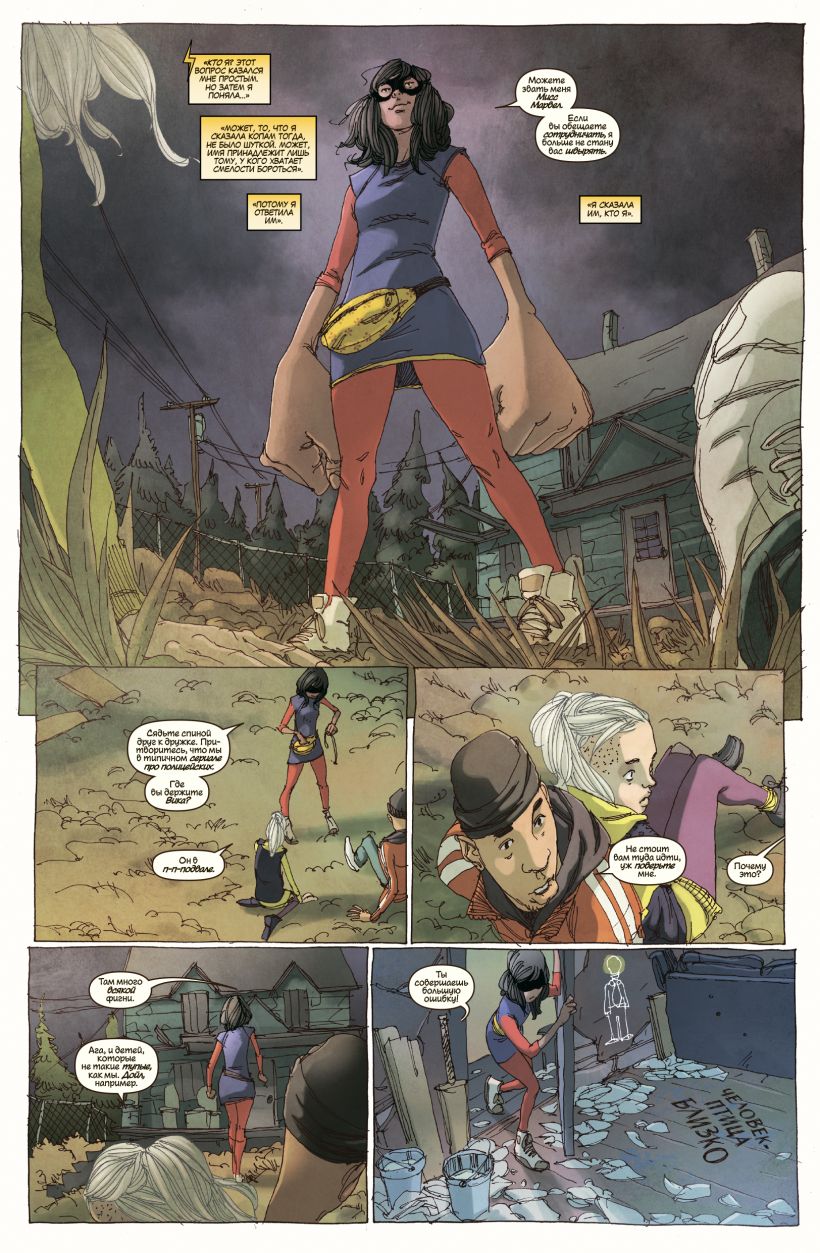 У вас появилась возможность насладиться полной историей сенсационного появления Камалы Хан во вселенной Marvel… от самого начала карьеры борца с преступностью вплоть до конца мира! Будучи мусульманкой, растущей в Джерси, Камала хочет лишь одного — быть нормальной. Но когда туман терригена активирует её скрытые силы, она становится невероятной! Вдохновлённая своим идолом, Капитаном Марвел, она использует новоприобретённые способности во благо своей семьи, друзей и общества… и при этом пытается разобраться с проблемами в школе, родителями, мальчиками и прочим подростковым! Появление своего собственного архиврага, стычка с Локи и работа с Росомахой и Человеком-пауком быстро укрепят за Камалой прозвище Мисс Марвел. Но когда дни вселенной Marvel будут на исходе, сможет ли она собраться с силами и предстать перед концом света? Да, если Капитан Марвел ей поможет! Камала Хан — героиня, которая нужна XXI веку и котору он заслуживает!